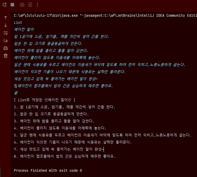 기존 레시피를 List, Map, Set을 활용해 재코딩 해보는 건데, 이번엔 참조자료를 먼저 봤다. 강의 1회차 훅훅 넘어가는걸 권장하는데 과제에서 탁 막히다보니 쩔 수가 없다.